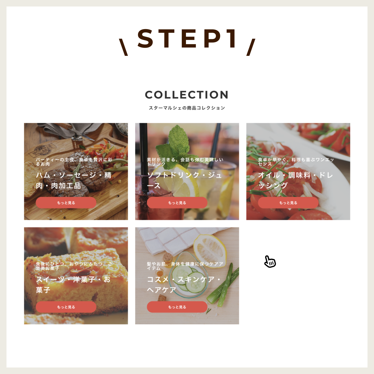 ご興味のあるコレクションから、購入したい商品を探し、クリックします