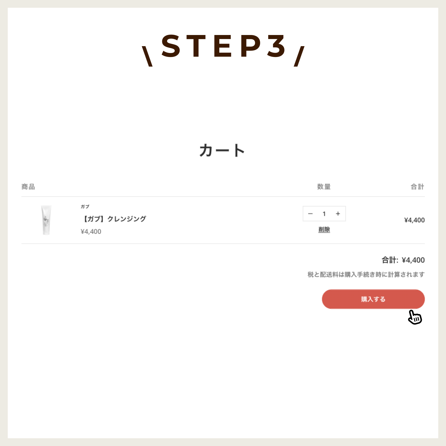 画面右上の商品カゴボタン等をクリックし、カートの中を確認します。購入する商品にお間違えが無ければ「購入する」をクリックします