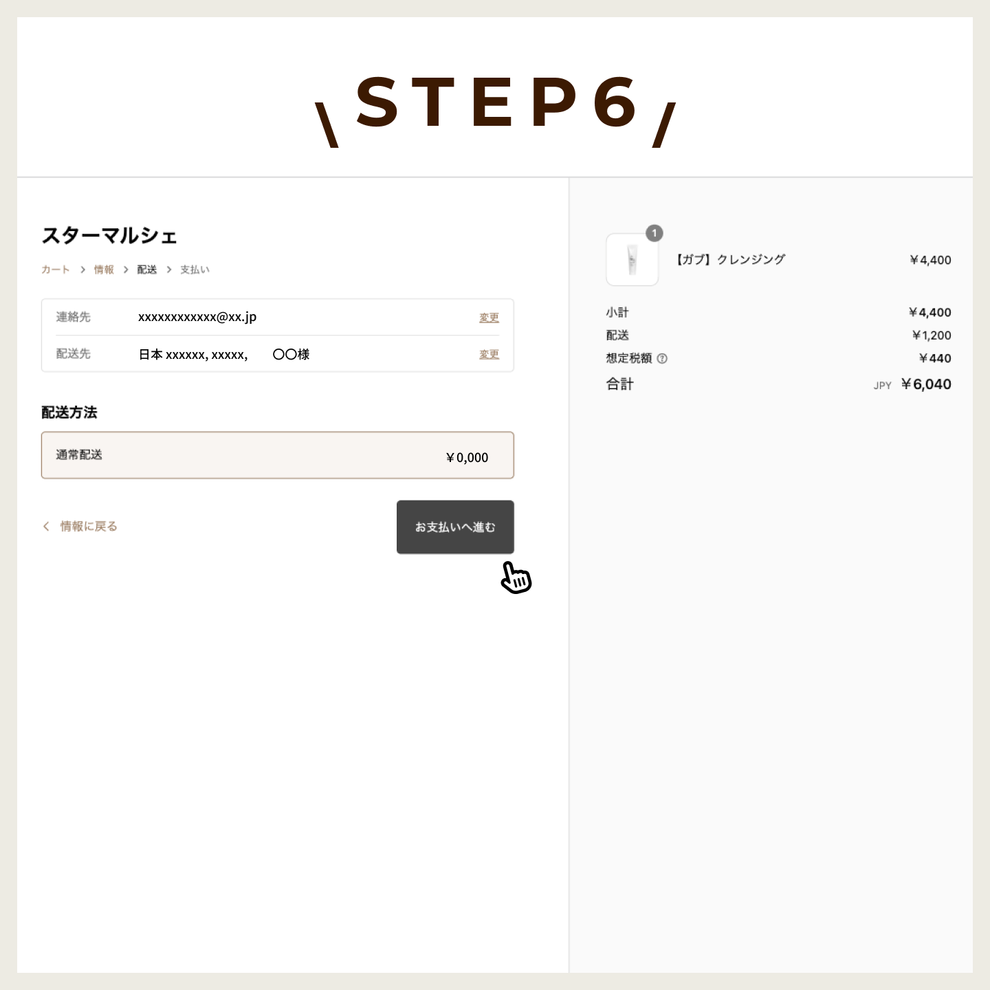 ⑥配送方法(クール便など)やご購入内容・金額を確認する