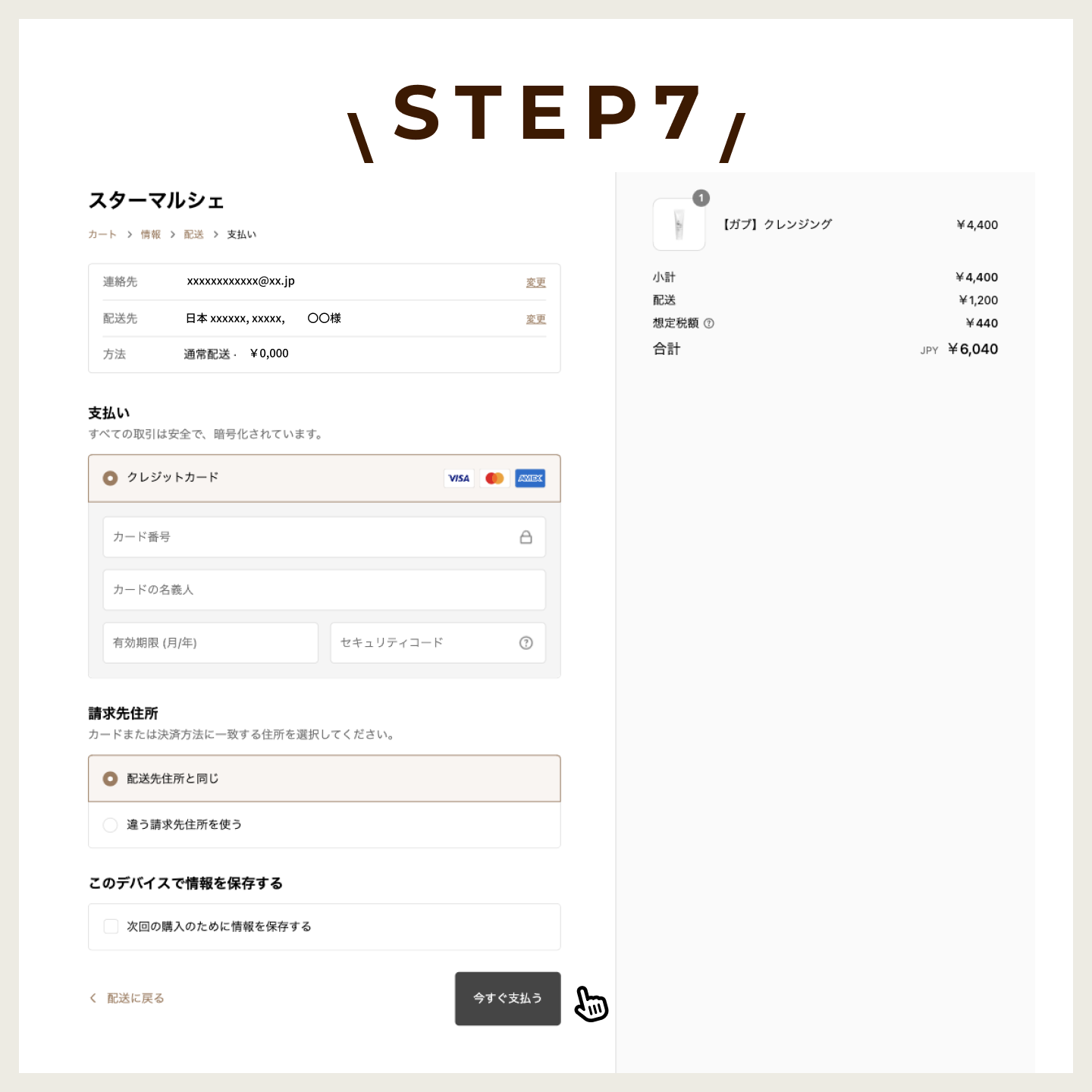 ⑤お支払い方法を選択、住所等の必要情報を入力する